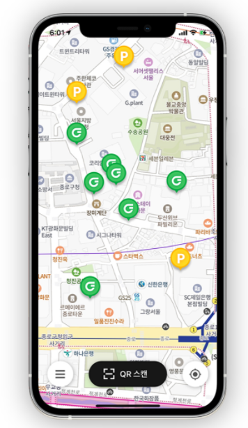 - 앱으로 주변의 킥보드 위치 검색 가능