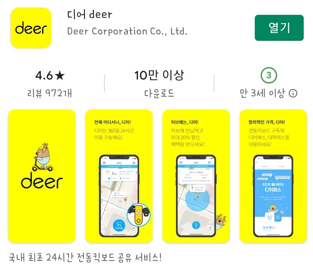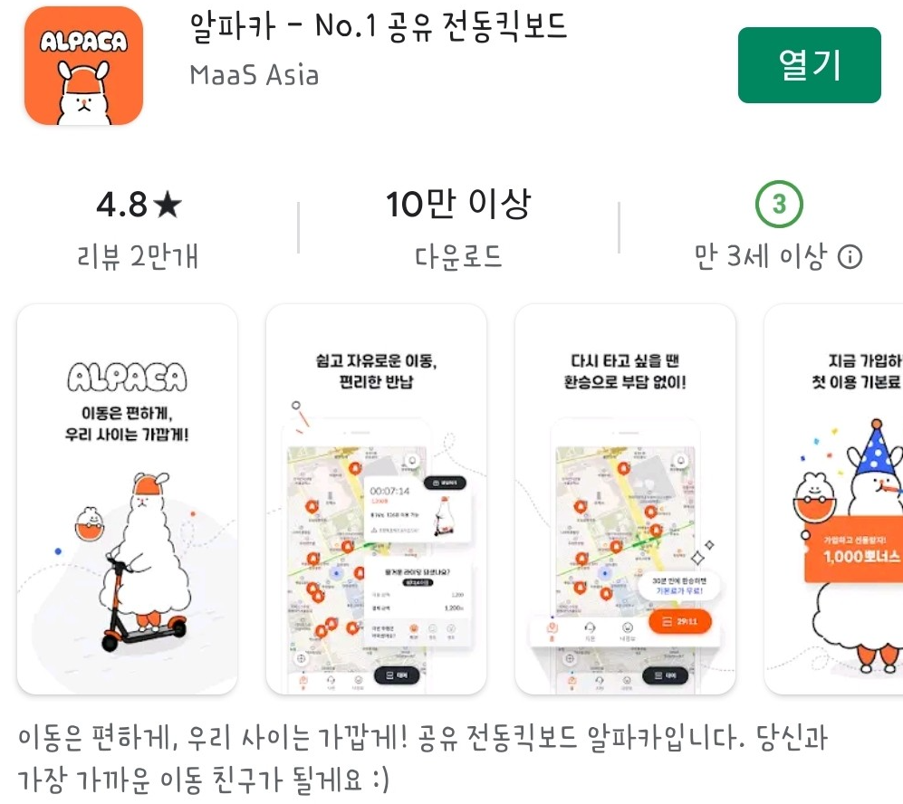 이용요금은 디어가 가장 비싸고, 짧게 이용할때는 지쿠터, 5분이상 이용할시는 알파카가를 이용하는게 경제적인듯 합니다.