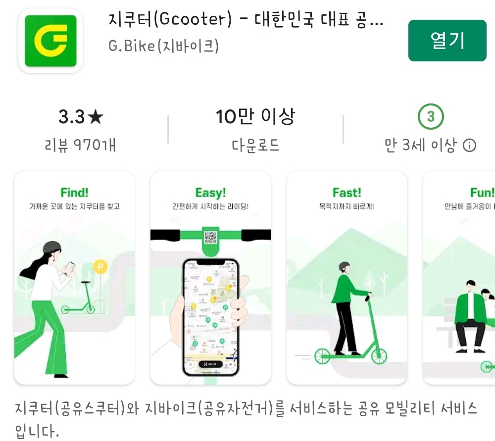 - 지쿠터 : 기본요금 300원 + 분당 이용요금 130원~180원