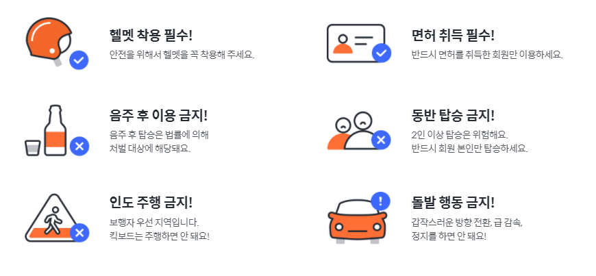 - 주차불가 지역이 있는데, 해당 지역에 주차하면 패널티 요금 부과됨 ( 공유개념이다 보니, 다음 사람이 찾기 쉬운 곳에 주차해야 함 )