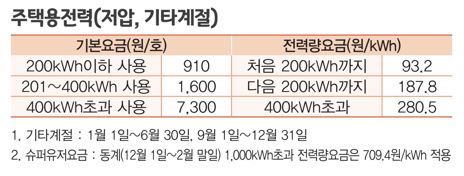 궁금한건 아무래도 집에서 사용하는 전기요금이므로 가정용 전기 요금을 기준으로 알아 보겠습니다.