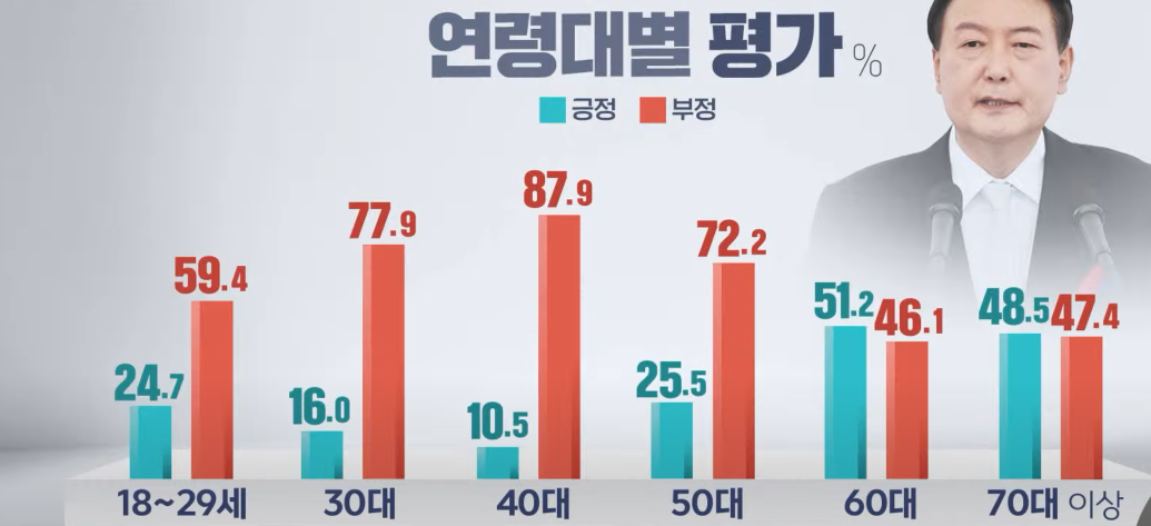 50대 이하는 그래도 뉴스를 보고 생각이 있는지, 상식선에서 평가를 한것 같은데, 60대 이상은.. 어르신들이라서 할 말이 없네요.. ㅋ