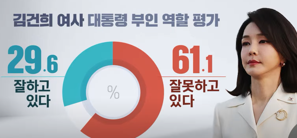 보너스로.. 김건희 대통령 부인에 대해서 대통령 부인 역활을 잘 하고 있는지에 대한 평가도 있는데요..