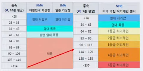 우리나라 태풍연구소에서는 아래처럼 태풍의 등급을 구분하고 있는데요..