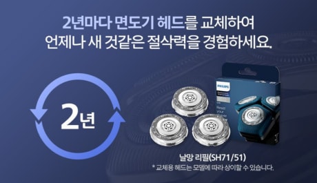 필립스 역시 중급 라인인 5000/7000라인에 사용되는 SH71/51 날망과 9000시리즈에 사용되는 SH91/51 날망은 서로 모양이 비슷해 교차하여 장착되는 것을 확인했습니다.